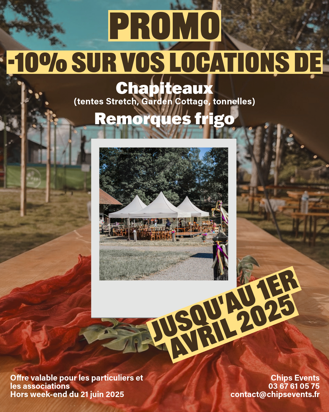 L'intégralité de nos chapiteaux bénéficie de l'offre des -10 %.