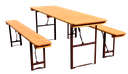 Inclus : 1 table et 2 bancs. Dimensions : Table : 200 cm x 60 cm, hauteur 80 cm Bancs : 200 cm x 25 cm, hauteur 40 cm Capacité : 6 personnes max